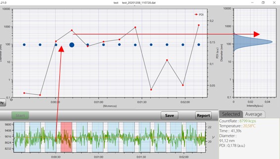 能夠在短時間內獲取大量的資料點,通過時間分辨監測合成過程並回饋調整參數,準確測量出粒徑的微小變化;快速準確地測量奈米顆粒的粒徑和粒徑分佈, 實現對奈米顆粒細微性的即時監測,能夠及時捕捉到顆粒在合成、團聚、分散等過程中的動態變化,為研究和生產過程提供及時的回饋和控制。
