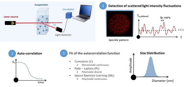 奈米細微性儀分析的原理是採用動態光散射Dynamic Light Scattering (DLS) 技術,用於測量分散或溶解在液體中的分子和顆粒的細微性和分佈: