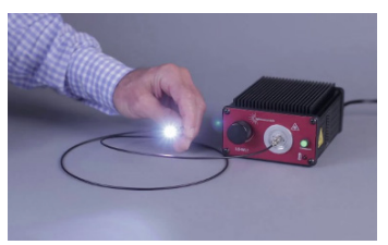 對於微米級光斑照明特別有效的光源是我們的 LS-WL1。這款輕巧的光纖耦合光源可從細芯光纖提供極高的亮度。此特殊光源基於「雷射轉換螢光」技術,將雷射光斑轉化為非相干「白光」,其亮度比 LED 高出數個數量級。